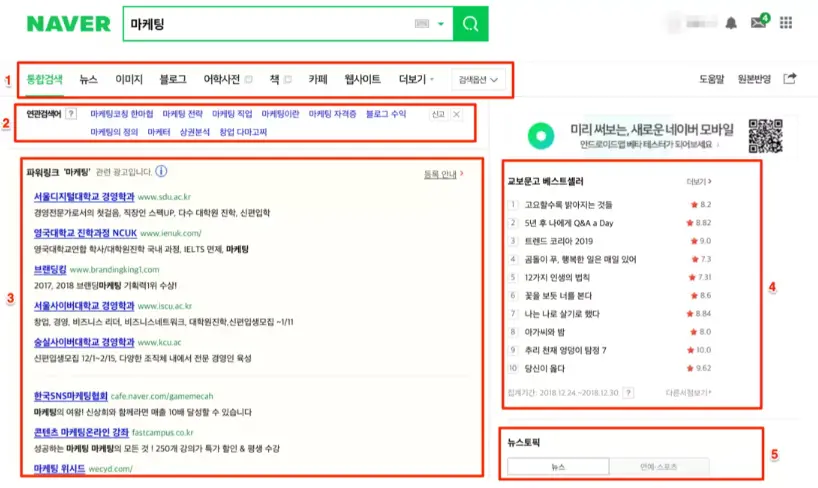 네이버 검색 결과는 일반적으로 다음과 같이 구성됩니다: